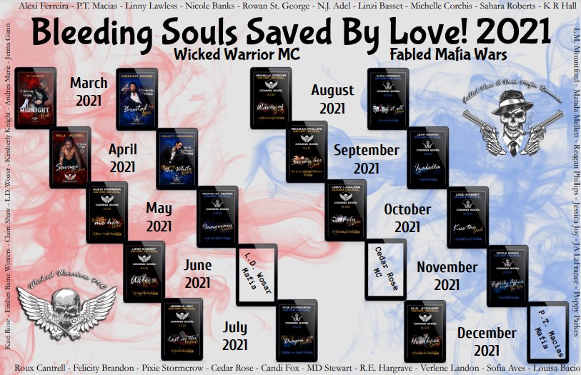 Please join us in celebrating the Bleeding Souls Saved By Love! series by sharing and inviting your friends. The authors will be bestowing you with love, cover reveals, release parties, fun games, and incredible gifts.